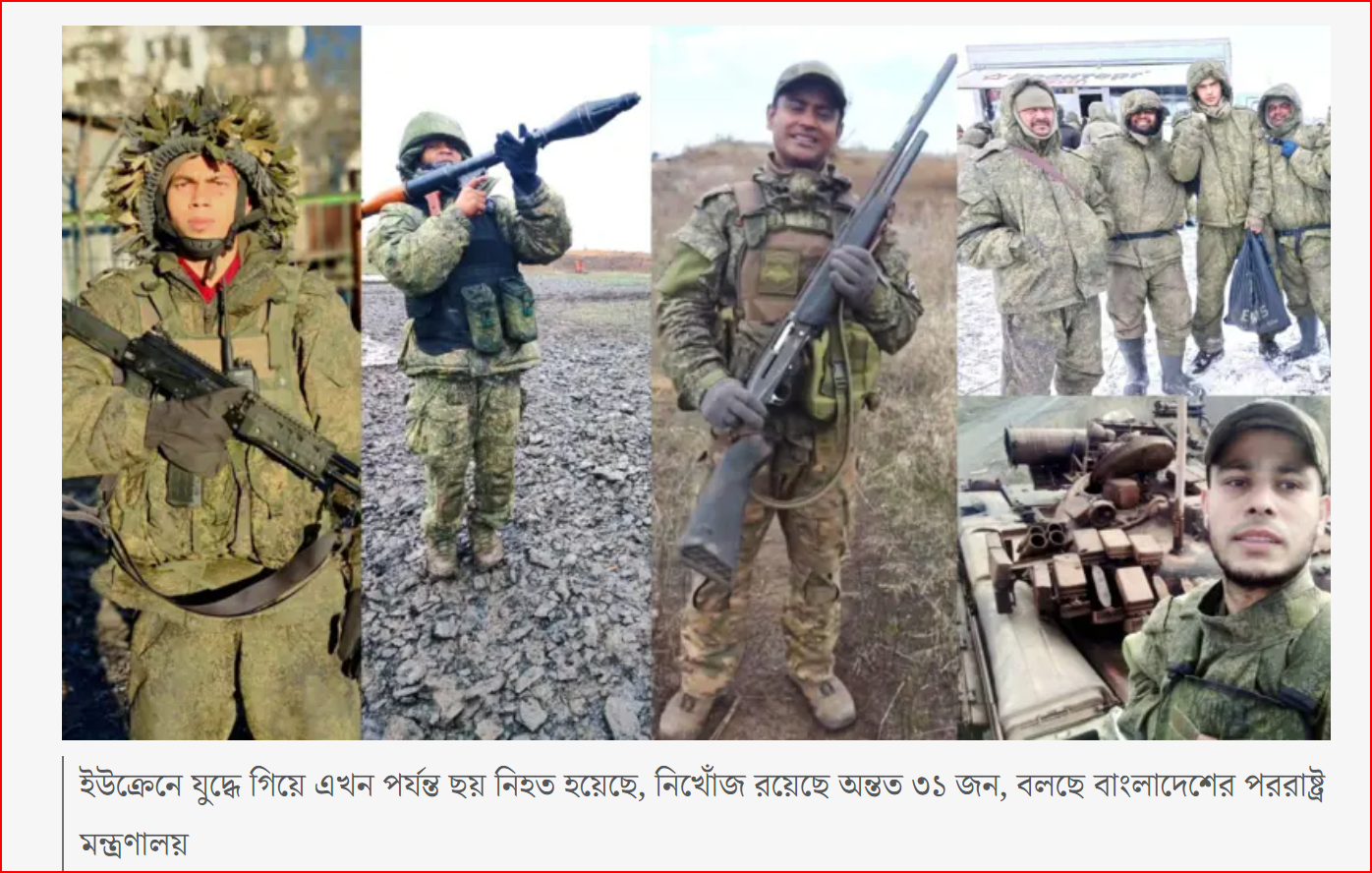 তবে বাংলাদেশের পররাষ্ট্র মন্ত্রণালয়ের তথ্য বলছে, দেশটির অনেক নাগরিক এখনও রাশিয়ার পক্ষে লড়ছেন।